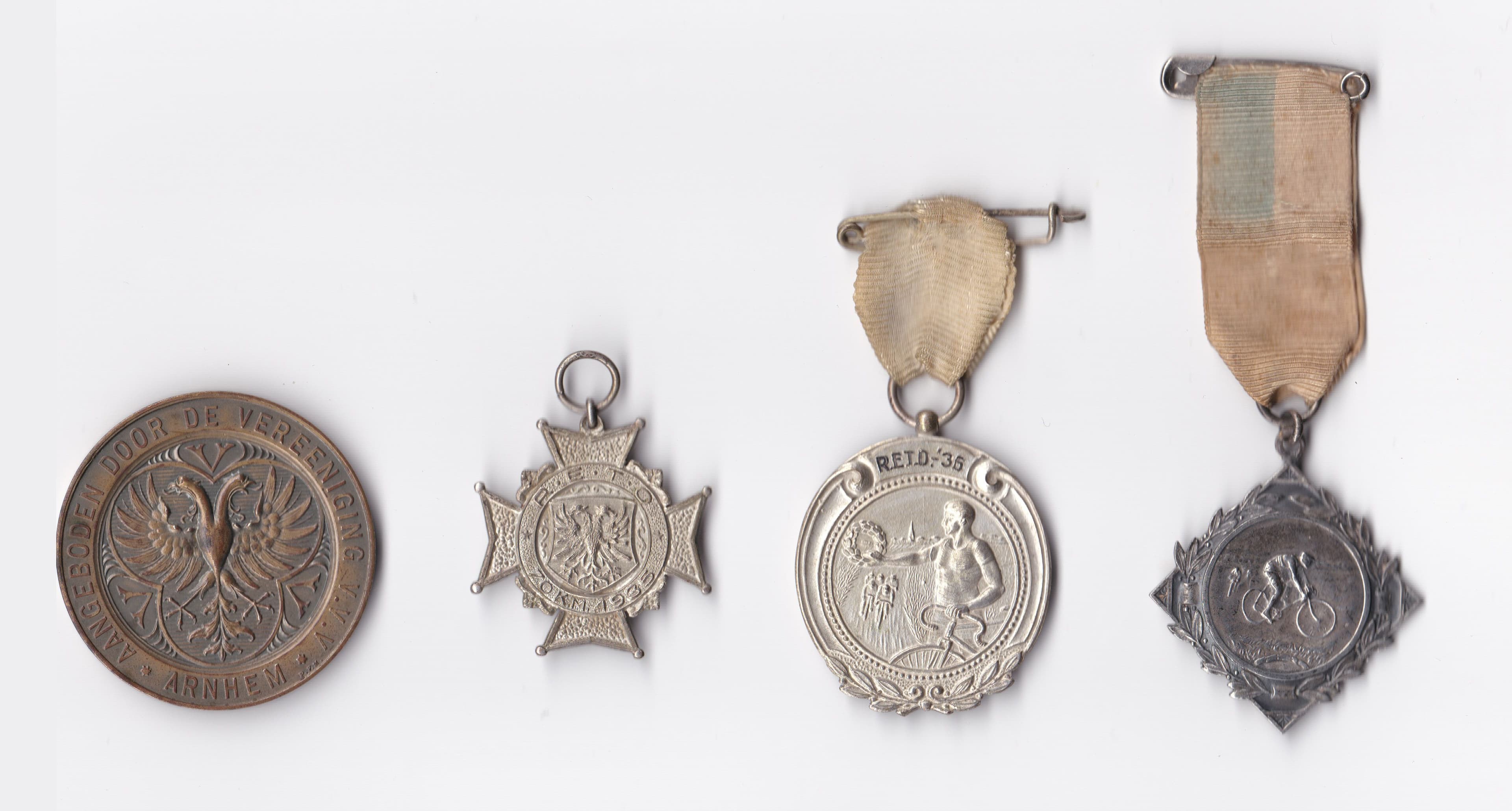 Ooit moet Gradus van Dalen ze met trots hebben gedragen, de medailles die hij in de jaren dertig als fietser van RETO verzamelde. Het zijn aandenkens aan toertochten en wedstrijden die hij als tiener reed, waaronder ook twee derde prijzen uit 1934.