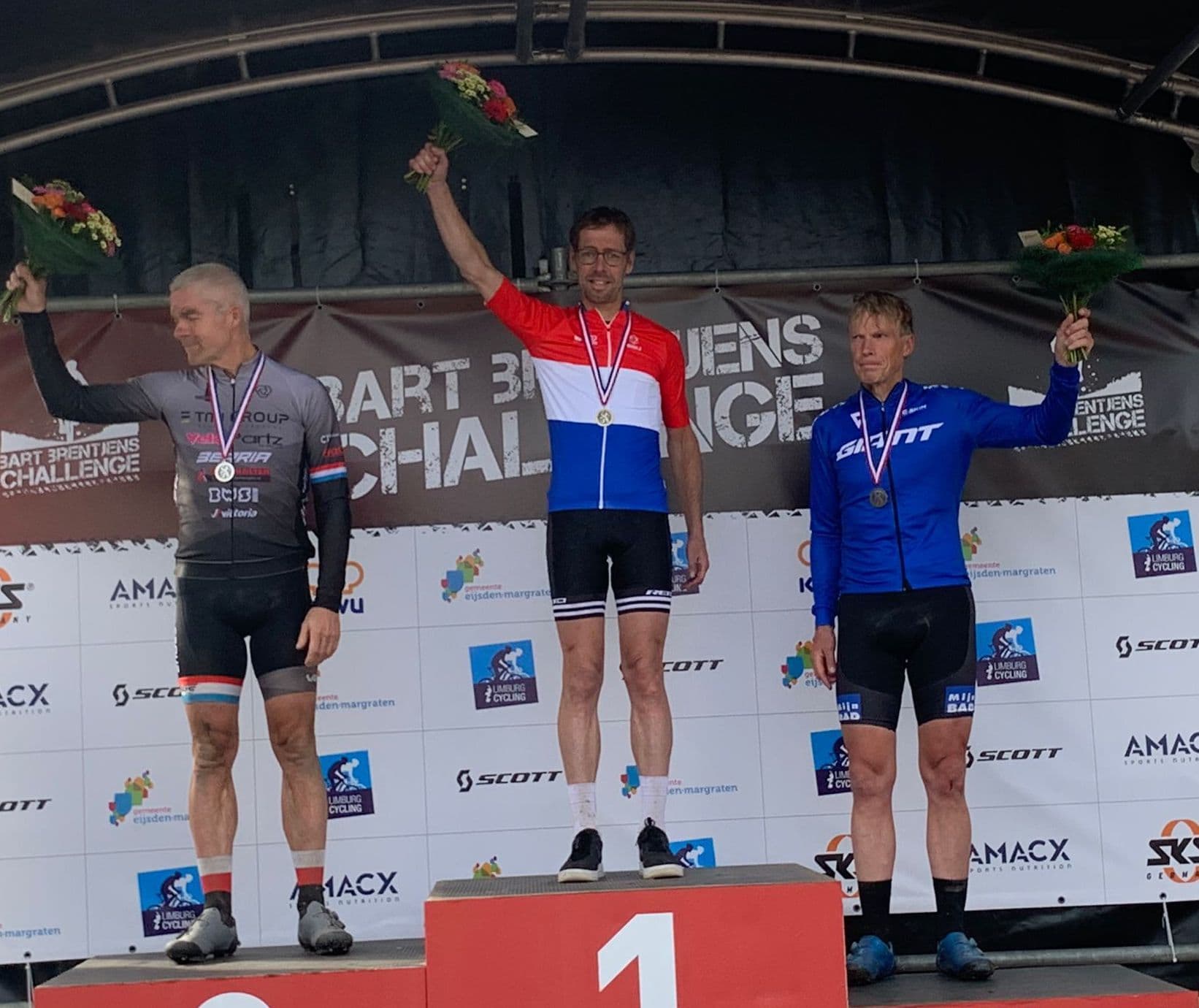 Gaby van Caulil, dit jaar steevast in de top bij de Masters 50+ NK’s met twee vierde plaatsen bij de cross en op de weg, was supergemotiveerd 8 oktober jl. voor de 90 km NK ATB Marathon rond de Keutenberg in Eijsden. Op 65 km wist hij de nummer 2 te lossen en kwam solo over de finish. Zoals hij zelf zegt: “het was een ideaal parcours voor mij met veel klimwerk van 3 tot 5 minuten”. Van harte gefeliciteerd Gaby met een meer dan verdiende NK-titel voor je! En een heroïsche plek ‘in the hall of fame’ van 103 jaar RETO-kampioenen.